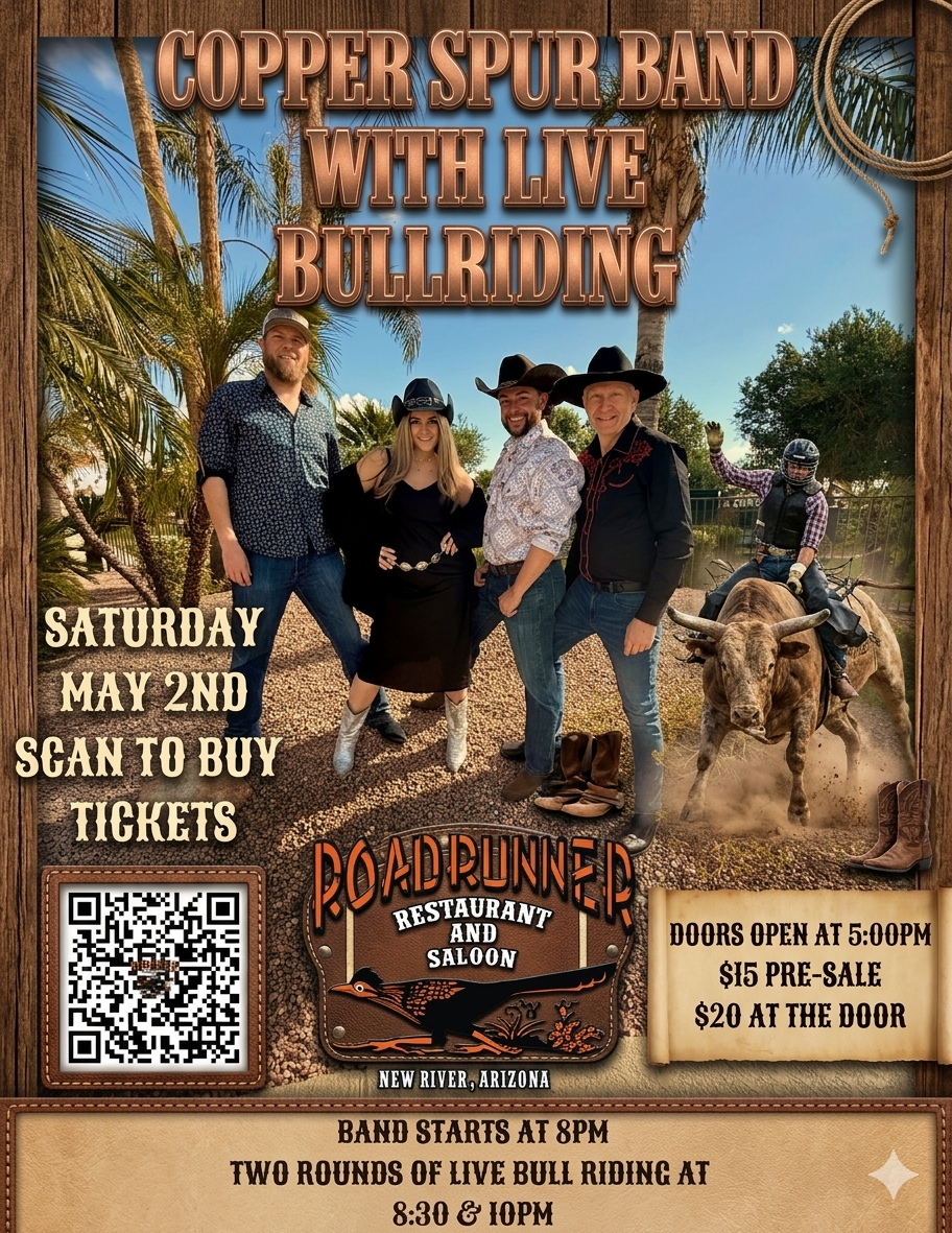 Based in the heart of the Southwest, the Copper Spur Band is a high-energy country ensemble known for delivering a authentic, floor-filling musical experience. Blending the gritty soul of classic outlaw country with the polished drive of modern Nashville hits, they’ve built a reputation as one of Arizona’s premier live acts. This is a band you will not want to miss!